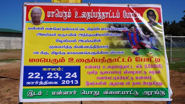 மன்னாரில் வடக்கு - கிழக்கு மாகாணங்களுக்கிடையிலான உதைப்பந்தாட்டப் போட்டி ஆரம்பம்.[படங்கள் ] Reviewed by Author on November 22, 2013 Rating: 5
