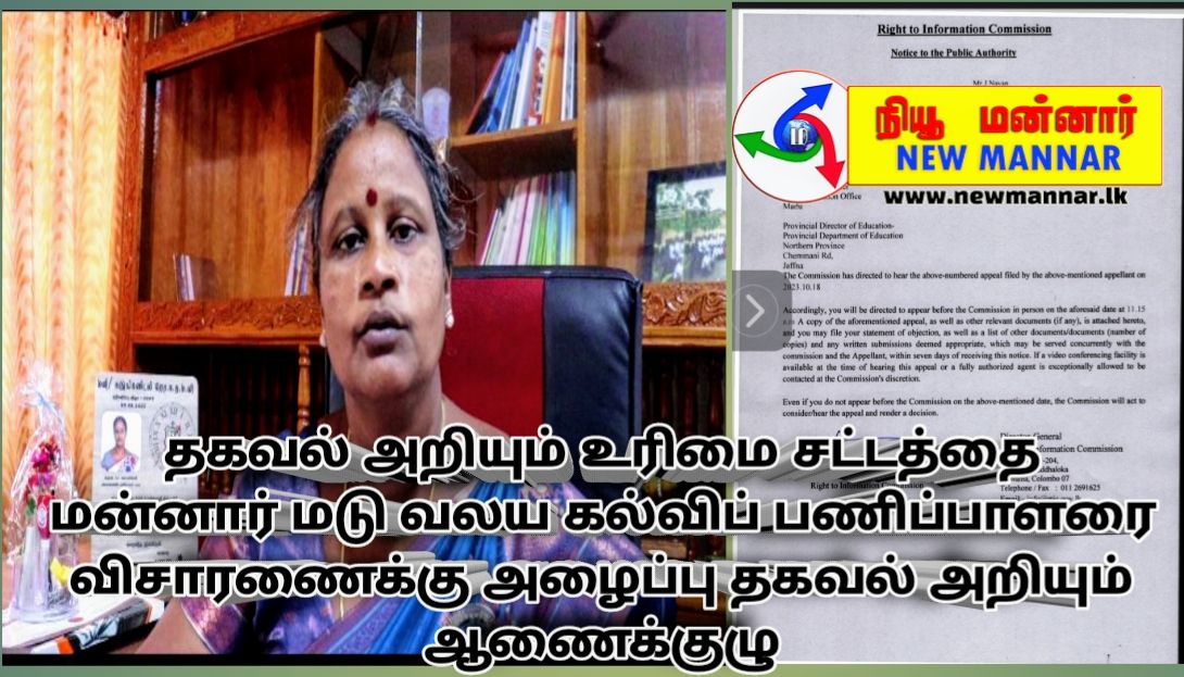 தகவல் அறியும் உரிமை சட்டத்தை மன்னார் மடு வலய கல்விப் பணிப்பாளரை விசாரணைக்கு அழைப்பு தகவல் அறியும் ஆணைக்குழு